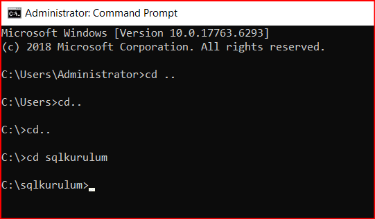 Gelen Cmd ekranında sqlkurulum dosyasına gidilir.