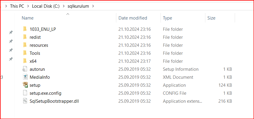 Çünkü sql server setup ilgili klasör altında bulunmaktadır.