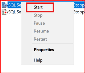 Yukarıdaki kaldırma işlemi yapıp Apply denildikten sonra sql server servis’i Start edilir.