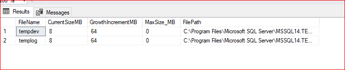 Aşağıdaki script ile tempdb dosyalarının boyutu, bulunduğu path bilgisi ve growth değerini görebiliriz.