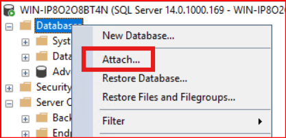 SSMS üzerinde Databases sekmesine sağ tıklayıp Attach denilir.