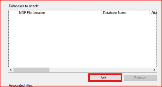 Gelen ekranda eklenecek mdf dosyamız seçilmesi gerekmektedir. Detach işlemi yapılırken mdf data file dizini bir kenara not edilmesi gerekmektedir.