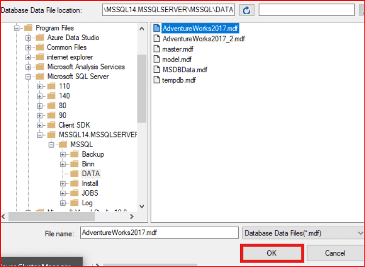 ( FILENAME = N'C:\Program Files\Microsoft SQL Server\MSSQL14.MSSQLSERVER\MSSQL\DATA\AdventureWorks2017.mdf' )