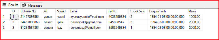 Not: Maskele oluşturulduktan sonra yetkili bir kullanıcı ile select çekersek verilerimiz şifrelenmemiş bir şekilde gelmektedir.