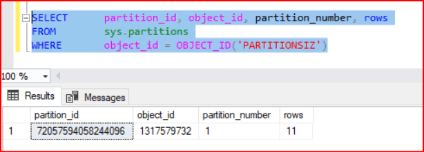 WHERE       object_id= OBJECT_ID('PARTITIONSIZ')