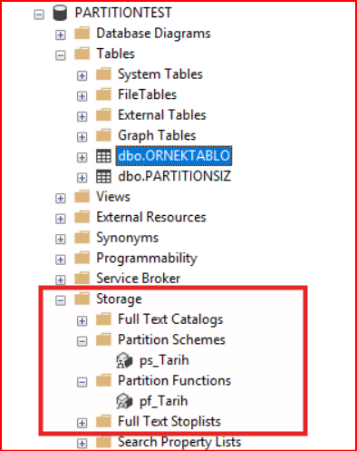 Veritabanımız altında tablomuzu partition yapısına geçirmek için bir function ve scheme yapısının oluşturulması gerekiyor. Aşağıdaki scriptler yardımıyla oluşturulur. Sizde elinizde bulunan verilerin dağılımına göre partition işleminin filegroup ve tarih aralığını belirlemeniz lazım. Detaylı bilgi için ilgili makalenin okunabilir.