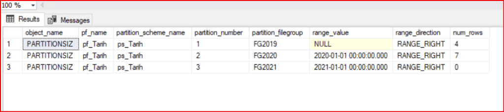 Not: Sorgularınızda performans anlamında iyi bir sonuç elde etmek istiyorsanız. Partition kolonun where koşulunda olması gerekmektedir. Sql server tüm partition’ı taramak zorunda kalır.