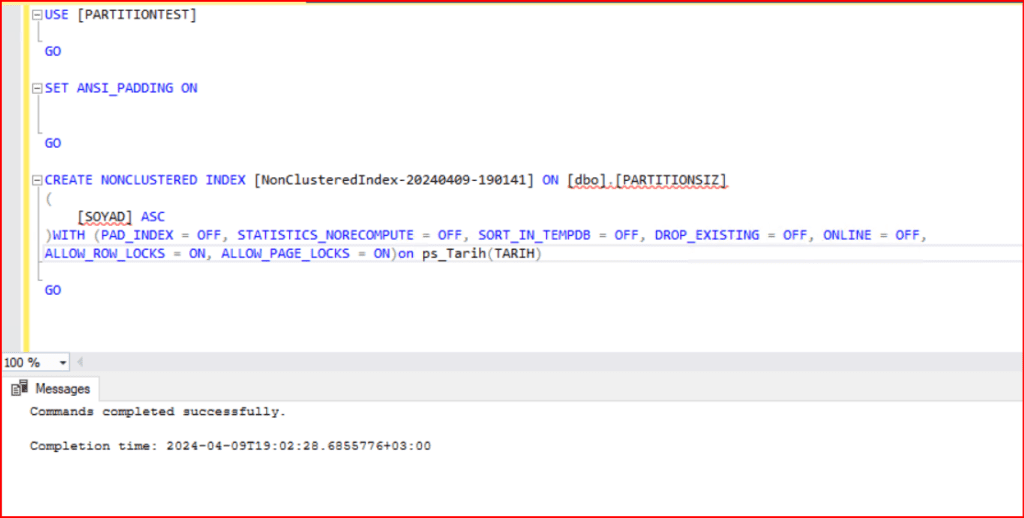 Partition’lı tabloda herhangi bir sıkıntı yaşamamak için yeni oluşturulacak her indexs ps_Tarih scheme yapısına göre oluşturulması gerekmektedir.