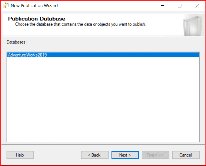 Gelen ekranda hangi veritabanımızı replica edeceksek seçim işlemi yapılmaktadır. İlgili veritabanı seçimi yaptıktan sonra Next denilir.
