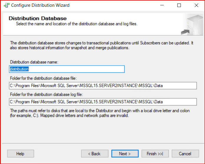 Bir sonraki ekranda aşağıdaki gibi seçim yaparak Distributor’ü kurulum yaptığımız sunucuda oluşturuyoruz. Arka planda distribution veritabanıda oluşacak. Next diyerek ilerliyoruz.