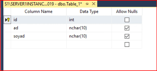 Bu yapıyı oluşturduktan sonra karşılıklı iki tarafta tablomuzu kullanacağımız bir tablo oluşturalım. Tablomuzu 1. instance üzerinde oluşturmuş oluruz.