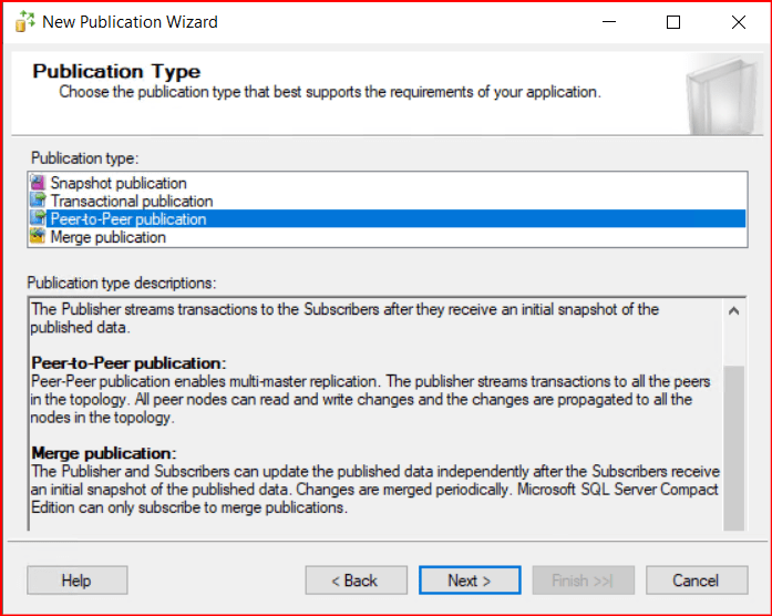 Gelen ekranda aşağıdaki gibi Peer to Peer Replication’ı seçerek Next diyoruz.