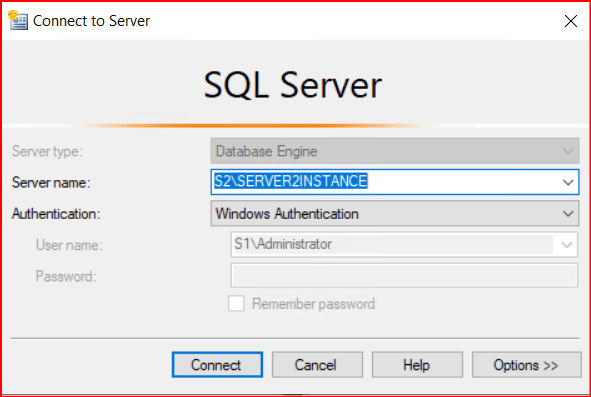 Biz iki instance üzerinde de aynı windows account’u kullanıyoruz ve bu account’a belirttiğimiz yetkileri daha önce verdik. Bu yüzden aşağıdaki gibi bir seçim yapıyoruz.