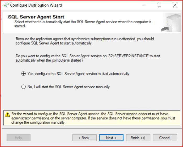 Gelen ekranda sql server agent servisinin otomatik başlaması için Yes diyiyoruz.