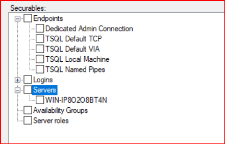 Oluşturacağımız role yapısına hangi kullanıcılarımın üye olması gerektiğini seçiyoruz. Login haricinde Server seviyesinde availability group seviyesinde, Endpoint seviyesinde yetkilendirme yapılabilir.