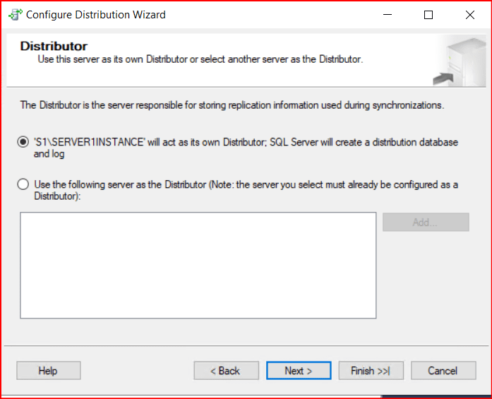 İlk olarak birinci sunucu üzerinde Distributor yapılandırılması yapılmaktadır. Bir sunucu üzerinde sadece bir tane yapmak yeterlidir.