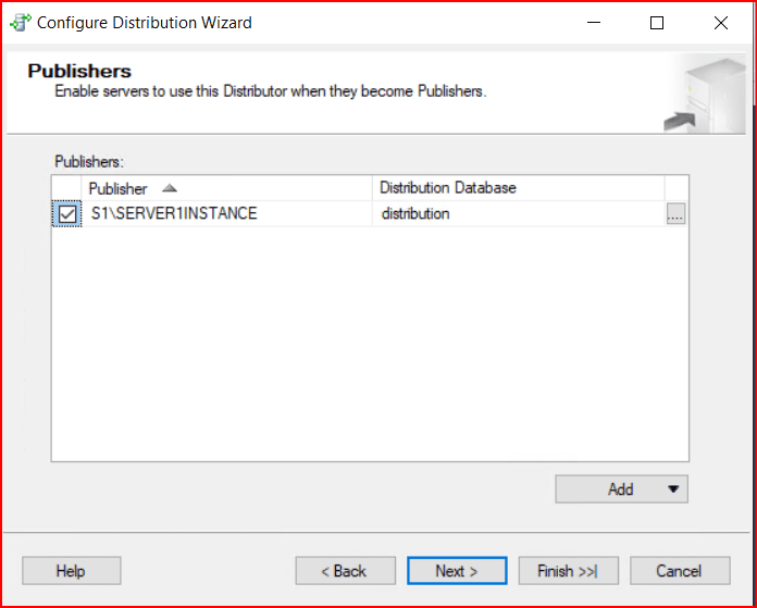 Bir sonraki ekranda bu distribution veritabanının hangi Publisher’ın kullanacağını belirliyoruz. Biz Publisher ve distributor’ın aynı instance üzerinde kuracağımız için aynı instance’ı seçili bırakıp next diyerek ilerliyoruz.