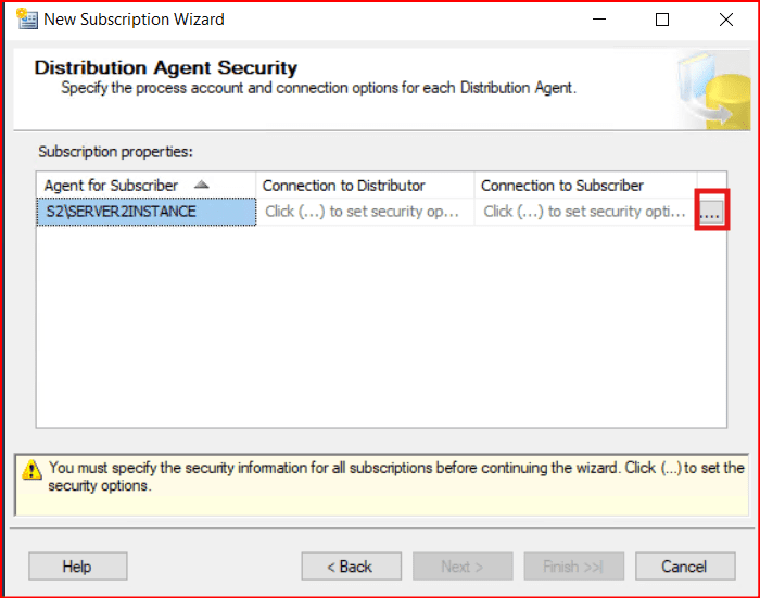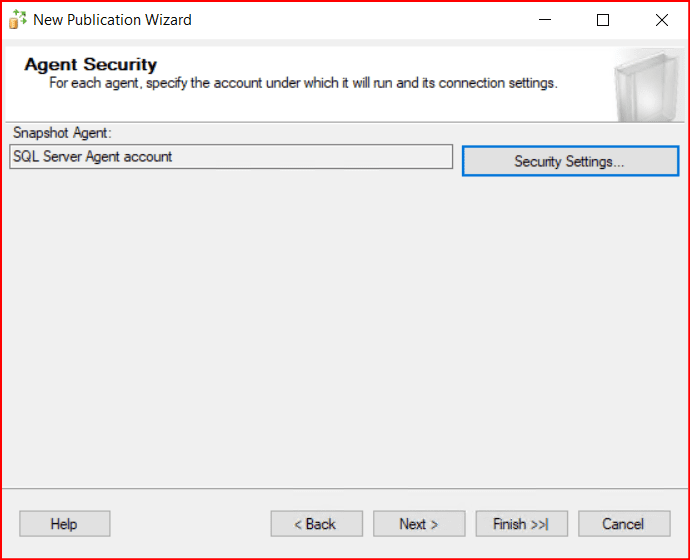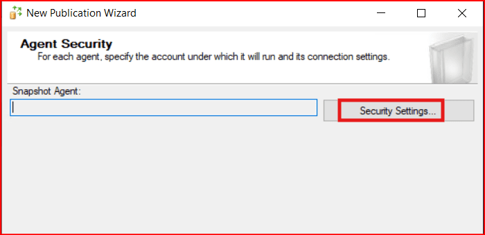 Bir sonraki ekranda Snapshot Agent ve Log Reader Agent’ın kullanacağı kullanıcı hesaplarını soruyor. Security Settings’e tıklayarak ilgili kullanıcıları set edebiliriz.