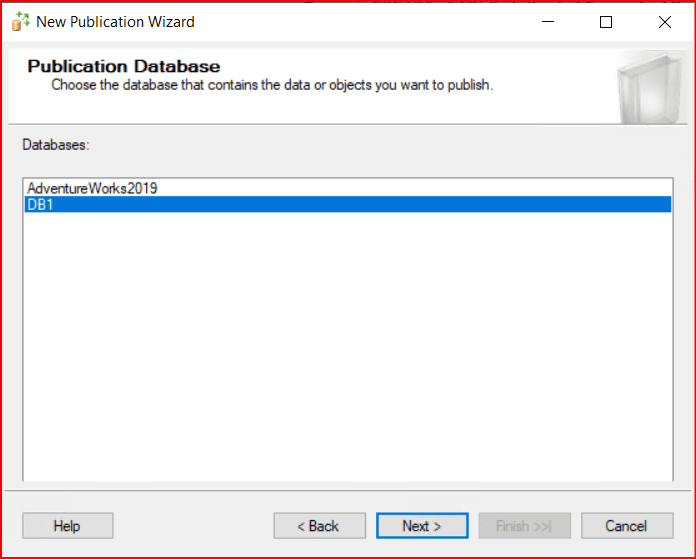 Gelen ekranda hangi veritabanımızı replica edeceksek seçim işlemi yapılmaktadır. İlgili veritabanı seçimi yaptıktan sonra Next denilir.