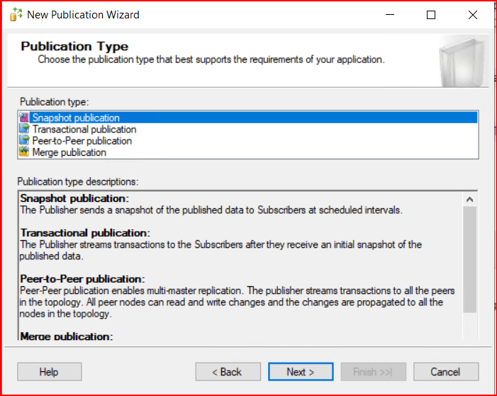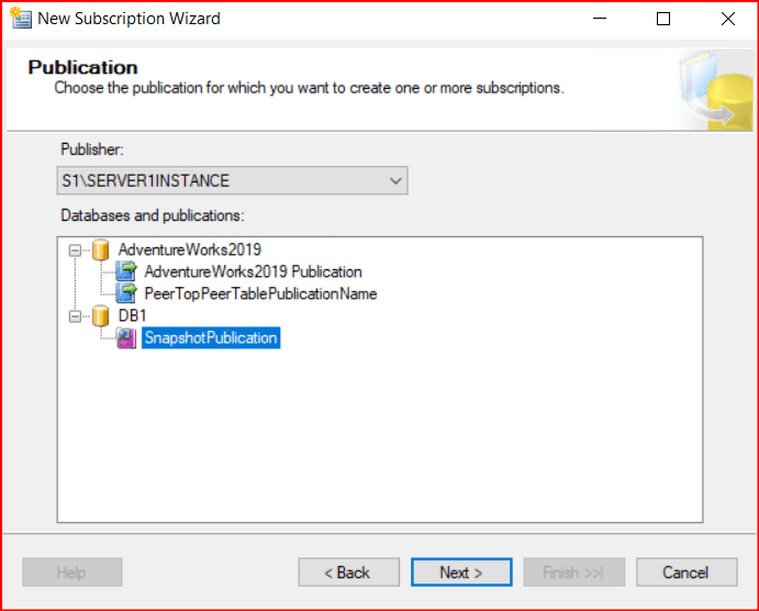 Gelen ekranda aşağıdaki gibi biraz önce tanımladığımız SnapshotPublication’ı seçip next diyoruz.