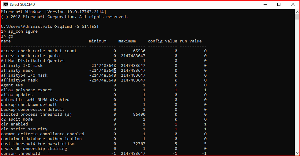 Server seviyesinde konfigürasyon yapmak için çok önemli bir system stored procedure var sp_configure ile system seviyesinde ayarlamalarımızı yapabiliriz. System’den system’e değişiklik göstereceği için çoğu ayar bunların bulunduğunuz sisteme göre configure edilmesi gerekmektedir.