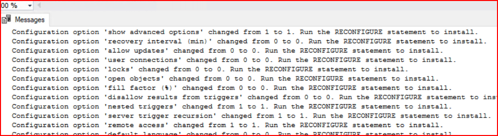 İlk komutuzu tekrardan çalıştırdığımızda ilgili sp_configure ayarı başarılır bir şekilde oluşmaktadır.