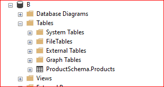 B veritabanı altında oluşturulan viewler dikkat ederseniz dbo.ProductView – ProductSchema.ProductsView yukarıdaki resimde dikkat ederseniz schema ismi viewlerle aynı veya farklı.