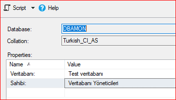 EXEC [DBAMON].sys.sp_addextendedproperty @name=N'Veritabanı:', @value=N'Test veritabanı'
