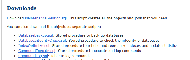 Ola Hallengren scriptleri birbirine bağımlı stored procedure içerir. En kritik ikisi: