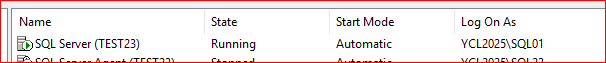 Yukarıdaki hatayı almamızın öncelikle sebebi Sql Server Configuration Manager ekranında bulunan sql server servis hesabına yeni kullanıcı set edilmesinden dolayıdır. Aşağıdaki resimde sql server servis hesabının SQL01 olduğu görülmektedir. Bu sorunu kısa süreliğine çözmek için sql server servis hesabını değişimden önceki haline geri dönülmesi gerekmektedir.
