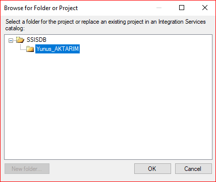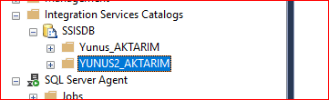 Yukarıdaki ekran resminden sonra gelen ekranda path kısmında catalog-klasör ve proje ismi belirlenir. /SSISDB/Yunus_AKTARIM/