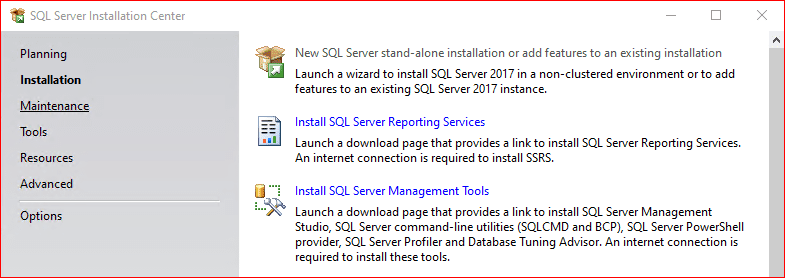 Daha sonra gelen ekranda Installation bölümünde New SQL Server stand-alone installation or add features to an existing installation kısmına tıklıyorum. Sql server sürümünün herhangi bir önemi yoktur. Tüm sürümlerde aynı adımlarla kurulum yapabilirsiniz.
