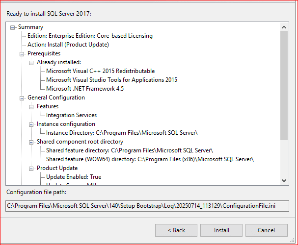 Gelen ekranda ne yüklediğimizin özet ekranını gördükten sonra Install deyip SSIS kurulum işlemlerine başlıyoruz.