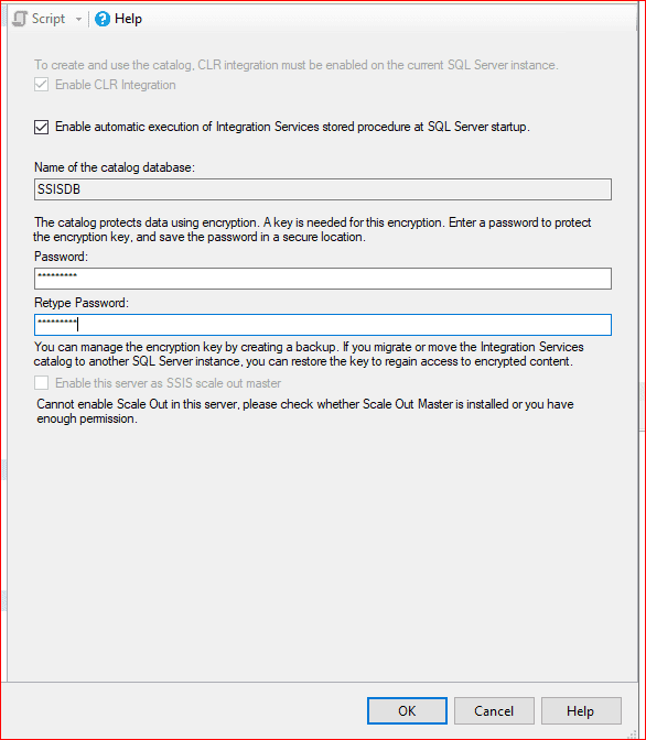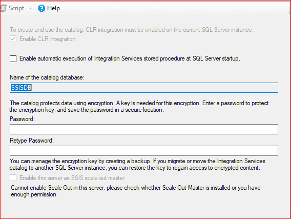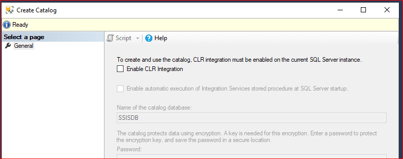 SSMS üzerinden Integration Services Catalogs bölümüne sağ tıklanıp Create Catalog bölümüne tıklanır.