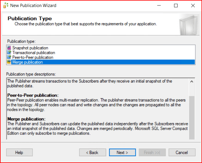 Gelen ekranda aşağıdaki gibi Merge Publication’ı seçerek Next diyoruz.