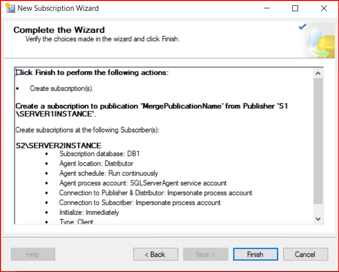 Bir sonraki ekranda aşağıdaki gibi Create the subscription(s) seçili haldeyken next diyoruz ve Finish diyerek işlemi tamamlıyoruz.