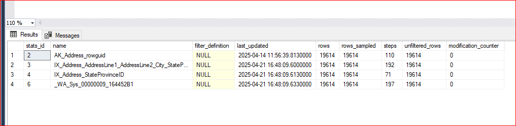 WHERE stat.object_id = OBJECT_ID('Person.Address')