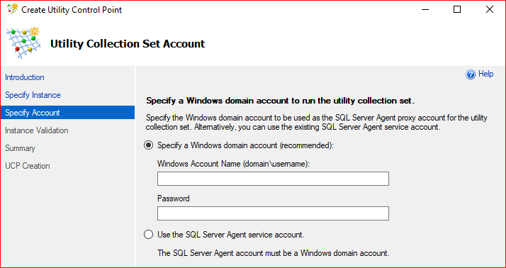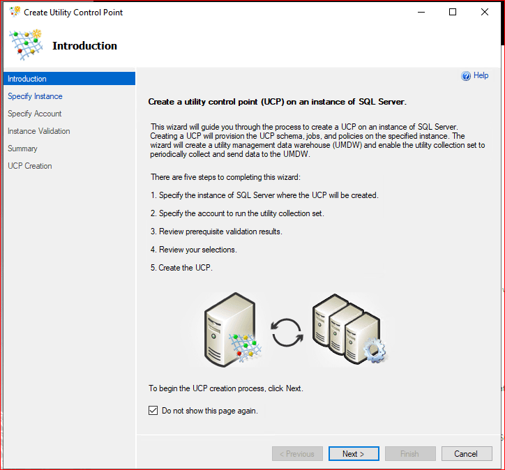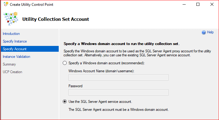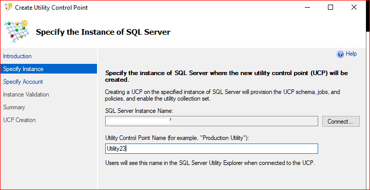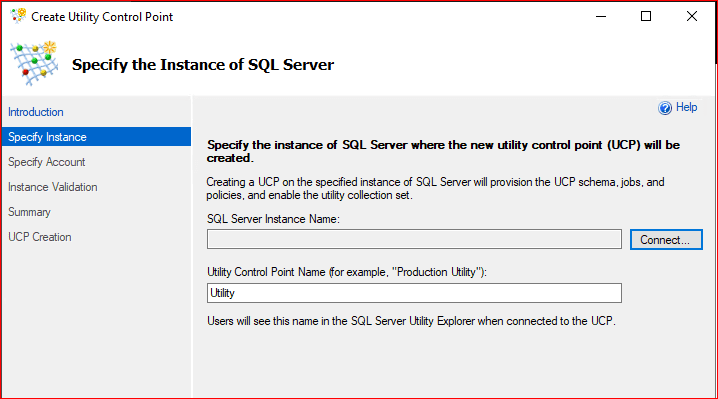 Gelen ekranda Sql server instance name‘e connect oluyoruz. Utility Control Point Name kısmında bir isim belirliyoruz.