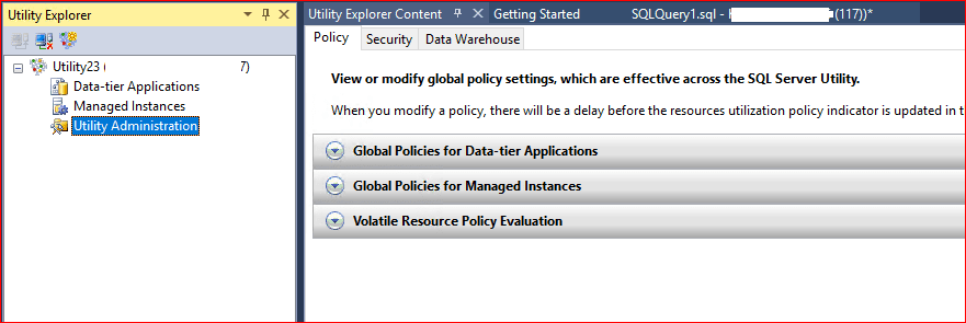Açılan ekranda Utility Administration ekranına tıklıyoruz ve sağ taraftan Global Policies for Managed Instance’ın altında aşağıdaki ayarlar listeleniyor.