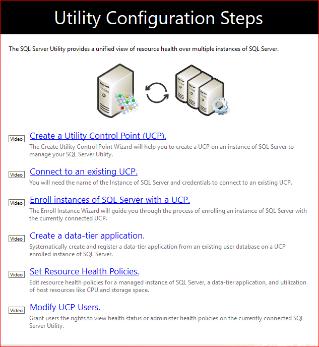 Utility Control Point SQL Server’ın içinde entegre bir şekilde çalışır ve SQL Server’ı kontrol etmek için kullanılır. CPU kullanım ve disk doluluk oranlarını ve geçmişini takip etmek için iyi bir yöntemdir.