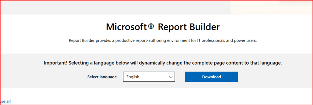 İlk olarak Microsoftun sayfasından Report Builder indirilir.