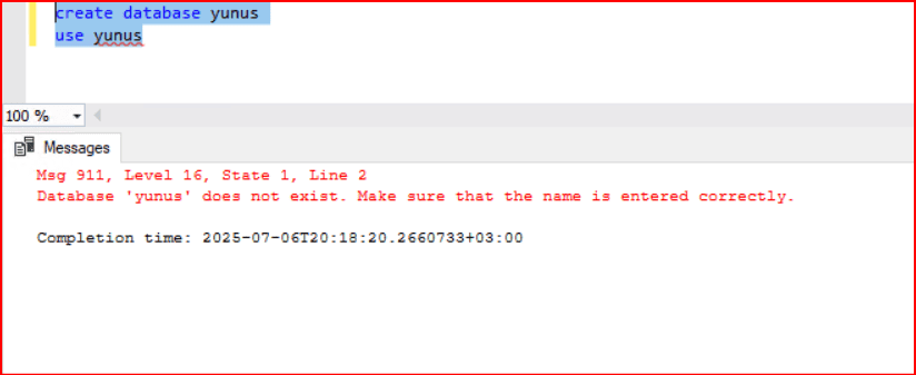 Aşağıdaki komutların hepsini seçip çalıştırılınca hata mesajıyla karşılaşılır.