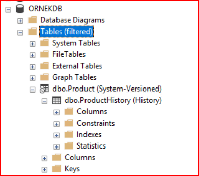 Temporal Tables yapısında Mevcut verilerin tutulduğu Ana tablo ve Normal bir tablo gibi çalışır ancak zaman bilgisi içerir. Bir diğer tablo türümüz ise History Table ana tablodaki verilerin geçmiş durumlarını saklar. Sistem tarafından otomatik olarak yönetilir.