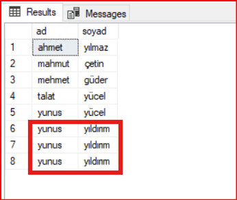 SELECT TOP (5) with TIES ad,soyad FROM [dbo].[Isımler] order by ad