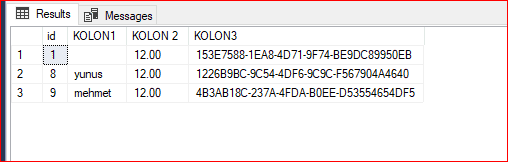 Kısacası sorgularılarımızda select NEWID( ) denilerek yeni bir unuqie id değeri üretilir.