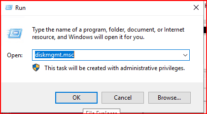 İlk başta 5 GB olarak tanımlanmış boş bir Null alanını Disk Management ekranından yapılandıralım. Windows arama yerine Run yazıyoruz. Daha sonra gelen ekranda diskmgmt.msc yazıyoruz.