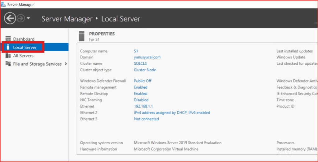 Local Server bölümü açıldıktan sonra Properties ekranında bulunan NIC Teaming bölümünde Disabled olan alana tıklanır.