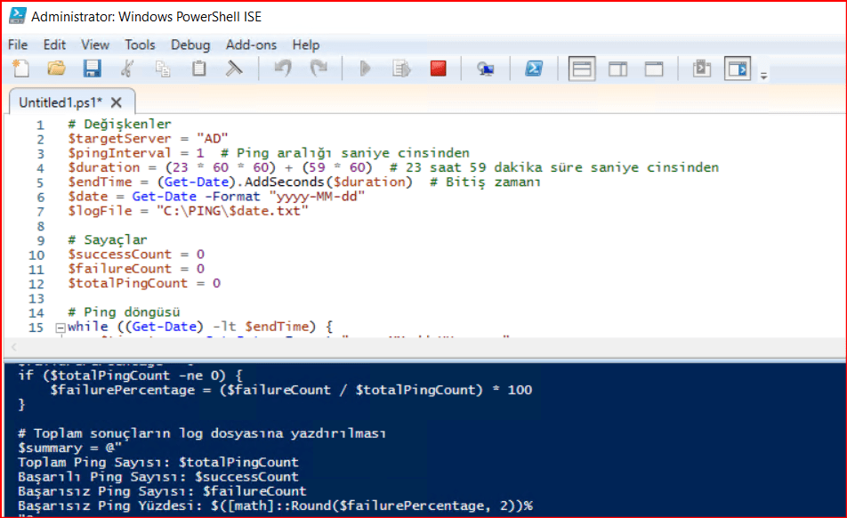 Write-Output "Ping işlemi tamamlandı."