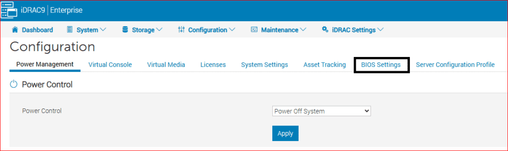 Sunucumuza Idrac bağlantısı sağlanır. Gelen ekranda BIOS Settings kısmına girilir.