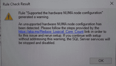 Bu makalede sql server 2022 cumulative update yapılırken karşılaşılan hata üzerine Server üzerinde Numa Node Konfigürasyonu yapmış olacağız. Bu makalenin ortaya çıkış sebebi Sql server 2022 üzerine CU 21 kurmak istediğimde aşağıdaki hatayı vermiş oldu. Belirtilen linkten hatanın sebebini bulabilirsiniz. İlgili makale